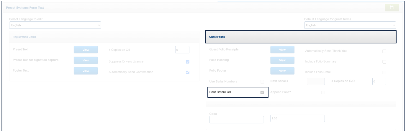 Being part of the guest ledger, a folio is accessible only once a reservation is checked-in. To access a folio before check-in, the "Post Bedore C/I" option has to be activated. Activating this feature can have consequences on the guest ledger balance if not correctly used. See below.