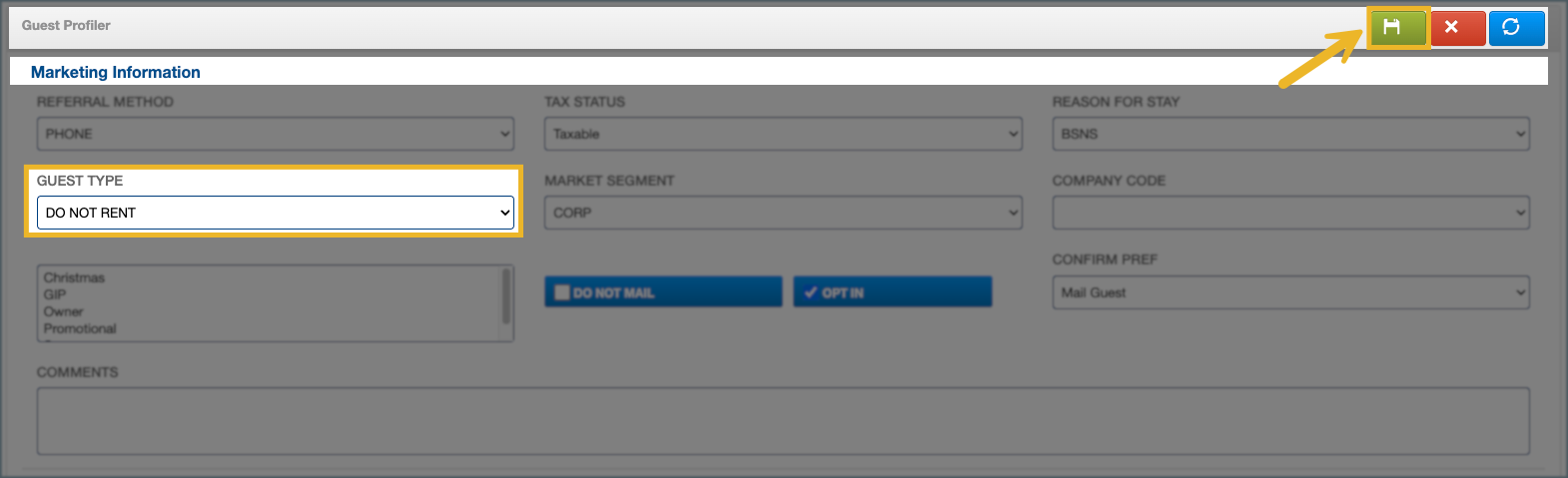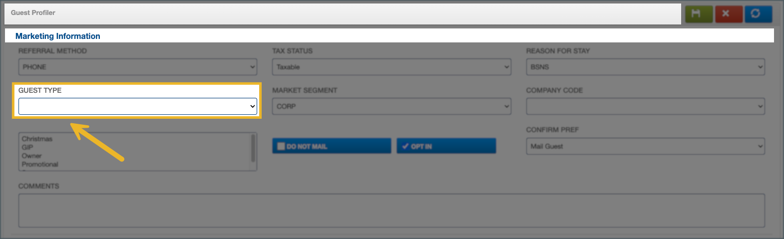 1. Scroll to the Marketing Information section, and locate the Guest Type field.