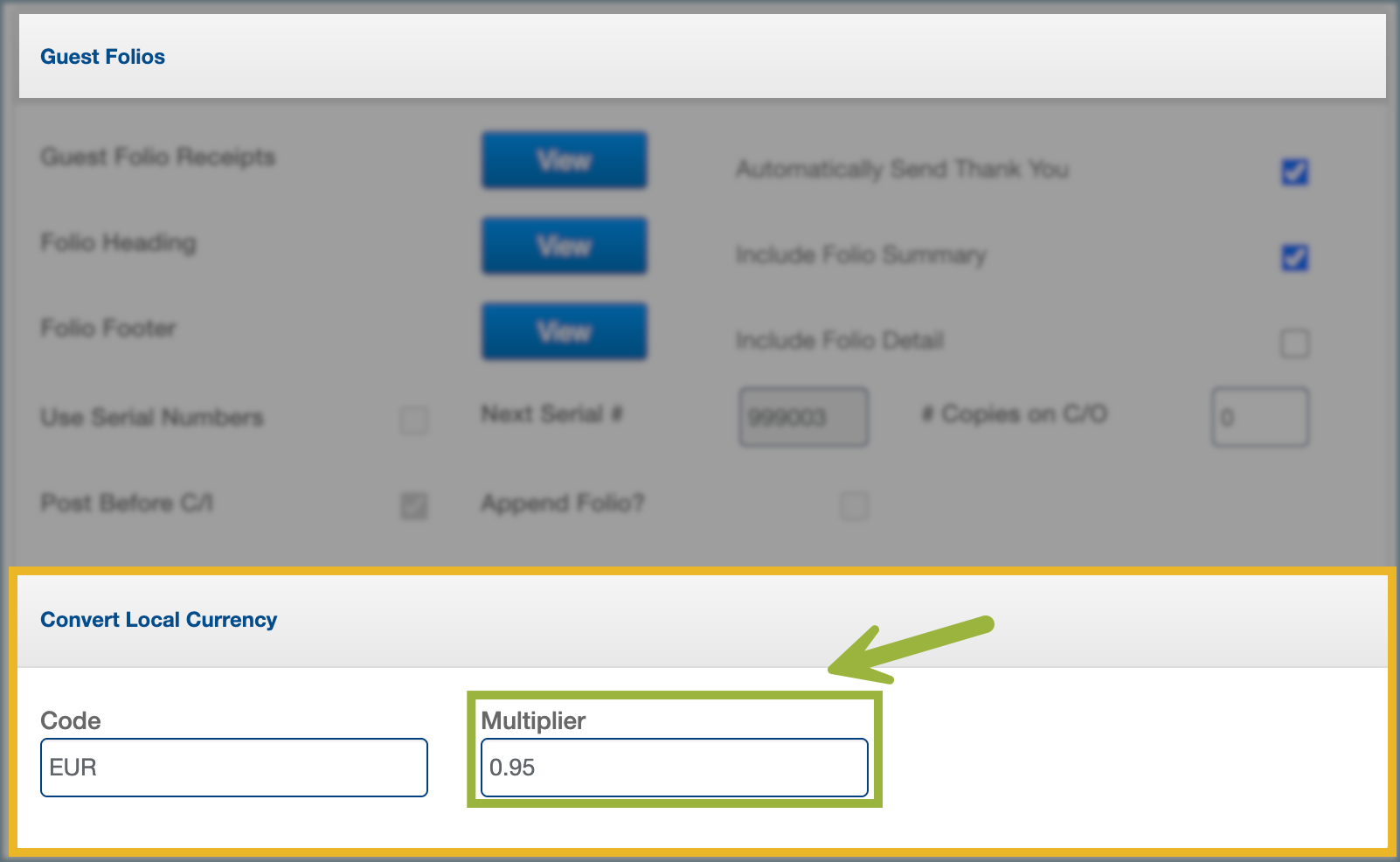 Testing Recommended: After updating the rate, generate a sample folio to confirm the converted total appears correctly.