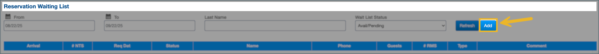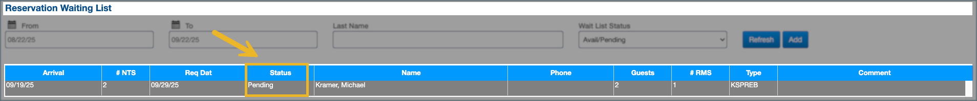 - What screen did you use (Front Office > Reservations > Wait List)?