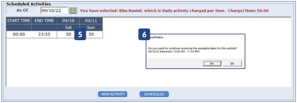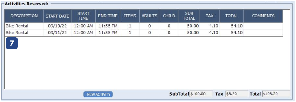 6. Click Yes to confirm the addition of those activities to the reservation.