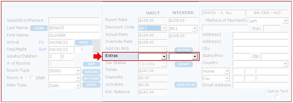 ? Watch Video An Extra is an additional charge to the guest for services such as a Pet fee, Crib in the room, or Safe usage. The Extras will be added to a reservation depending on the need requested. Path: Management > Setup > Property > Fixed Fees ...