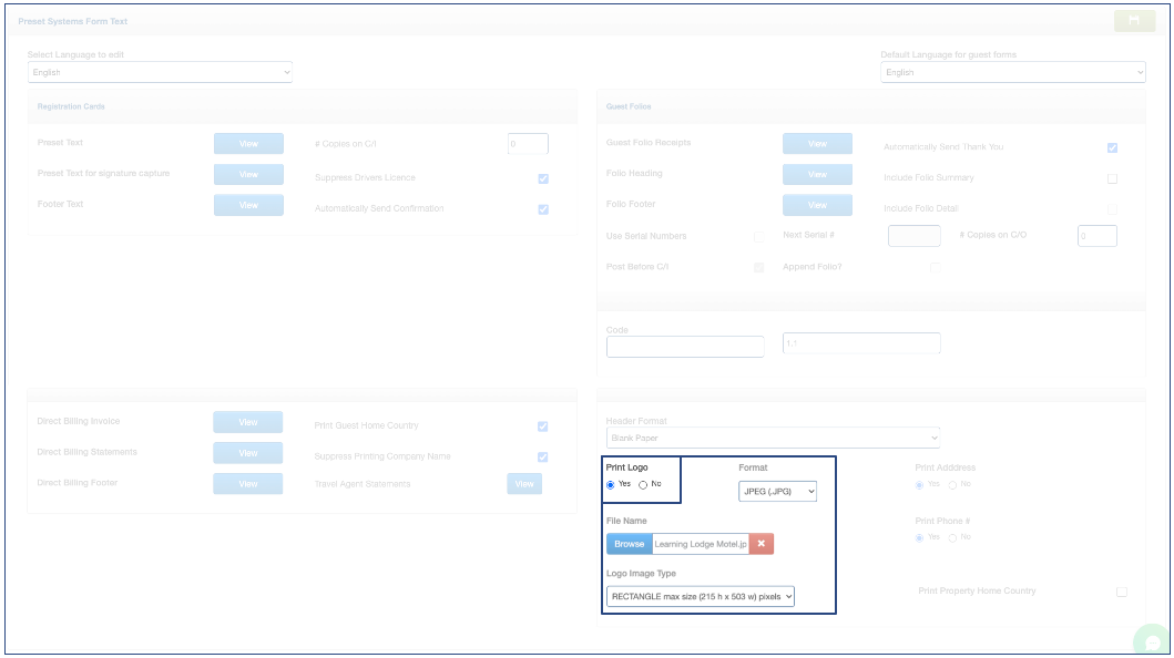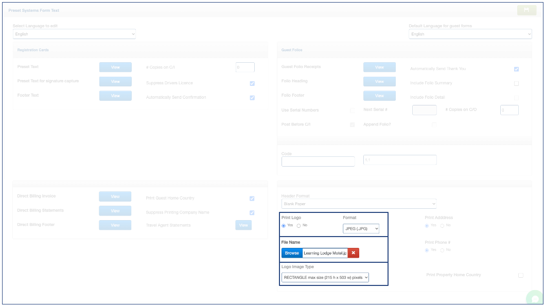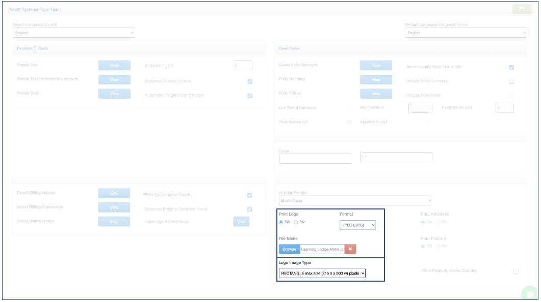 4. The Logo Image Type cannot be changed. There is only one format.