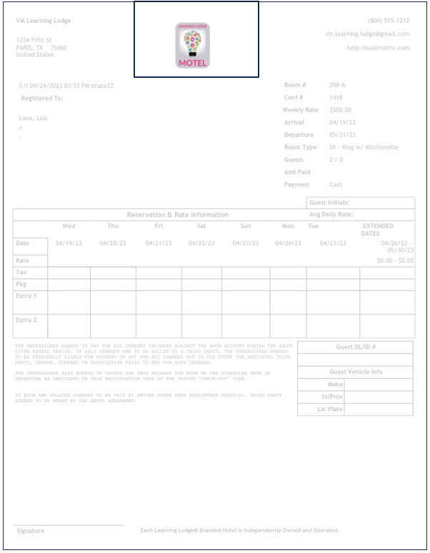 The Property Logo will show at the top of the form in the center of the page, as shown below.