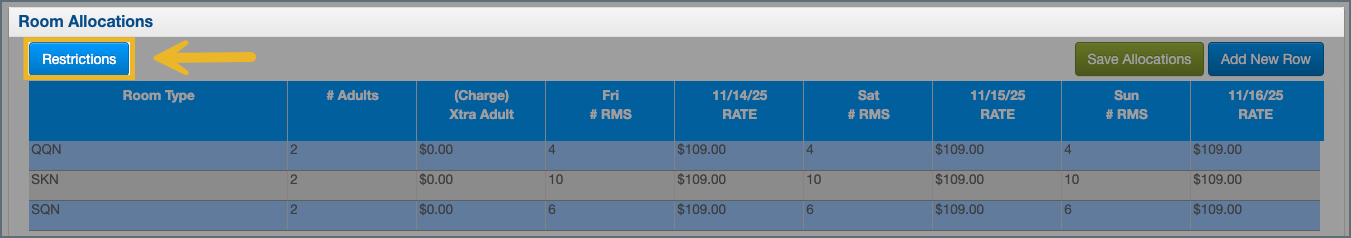 2. In the allocations area, find the Restrictions panel (or button/link labeled “Restrictions” or “Restrict”).