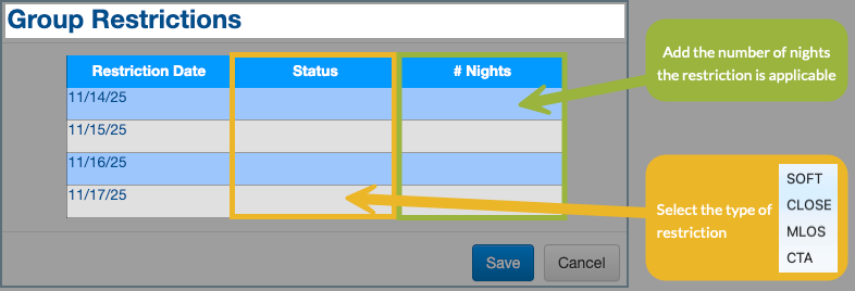 Example: A Soft Close of 4 nights on 01/05 means any booking that includes 01/05 must be at least 4 nights long — for example, 01/04–01/08, 01/02–01/06, or 01/05–01/09.