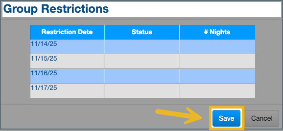 With Allocation Restrictions, you can apply rules such as Minimum Length of Stay (MLOS), Cut-Off Time for Arrival (CTA), and Soft / Hard Closes to a group’s allocation. These controls help manage how and when rooms are bookable via Member Web, ensuring your group block syncs correctly with online availability.