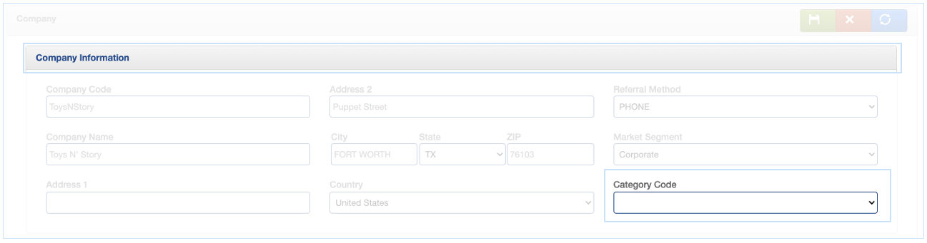 This setup will give the possibility to sort Companies by categories in their profiles. Path: Sales and Marketing > Setup 1. In the last line, enter a code and a description for the category. 2. Click the floppy disk at the end of the line to save ...