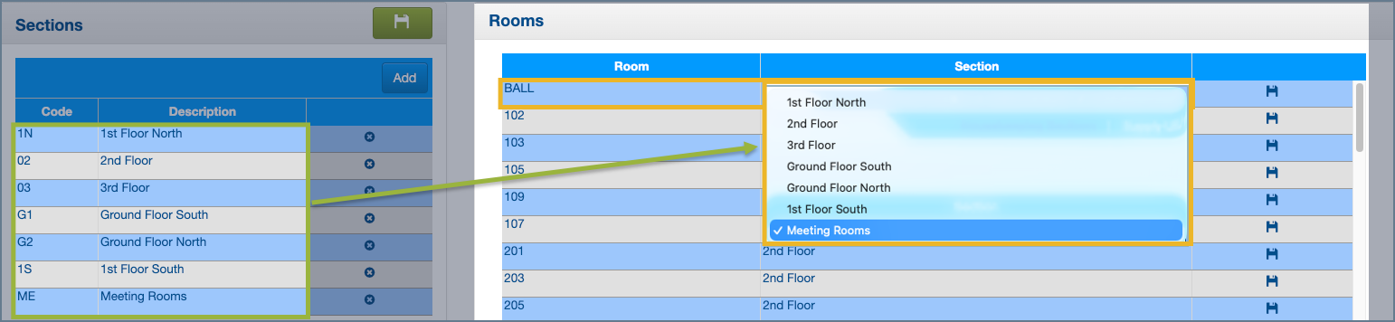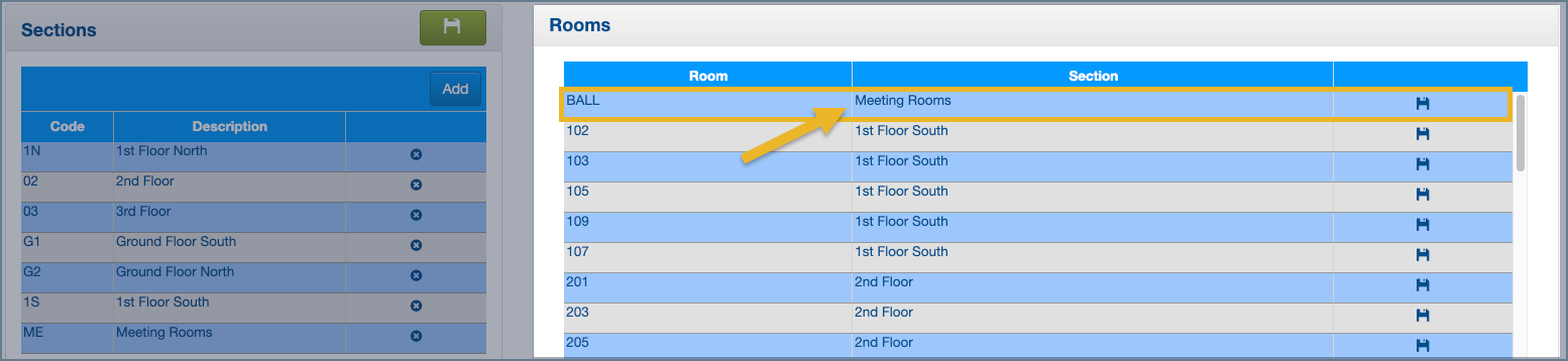 - If you assign sections to multiple rooms without saving each one, only the last saved assignment will be retained.
