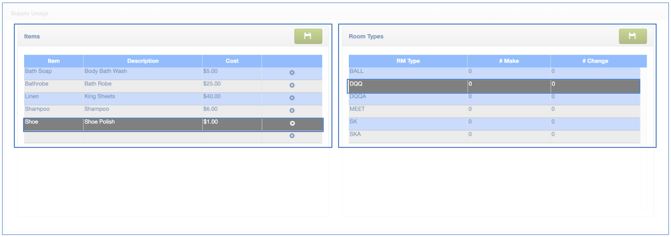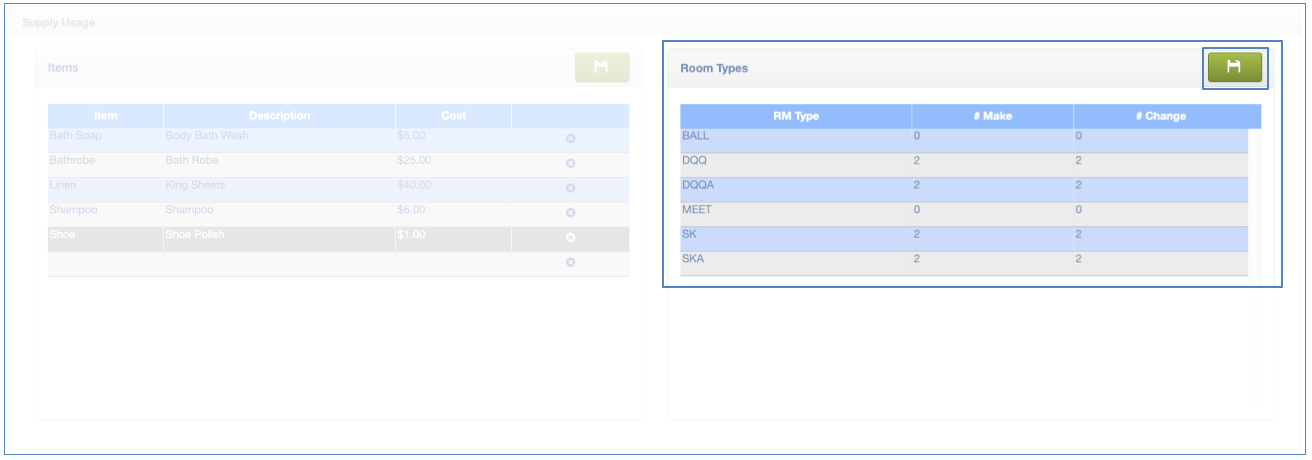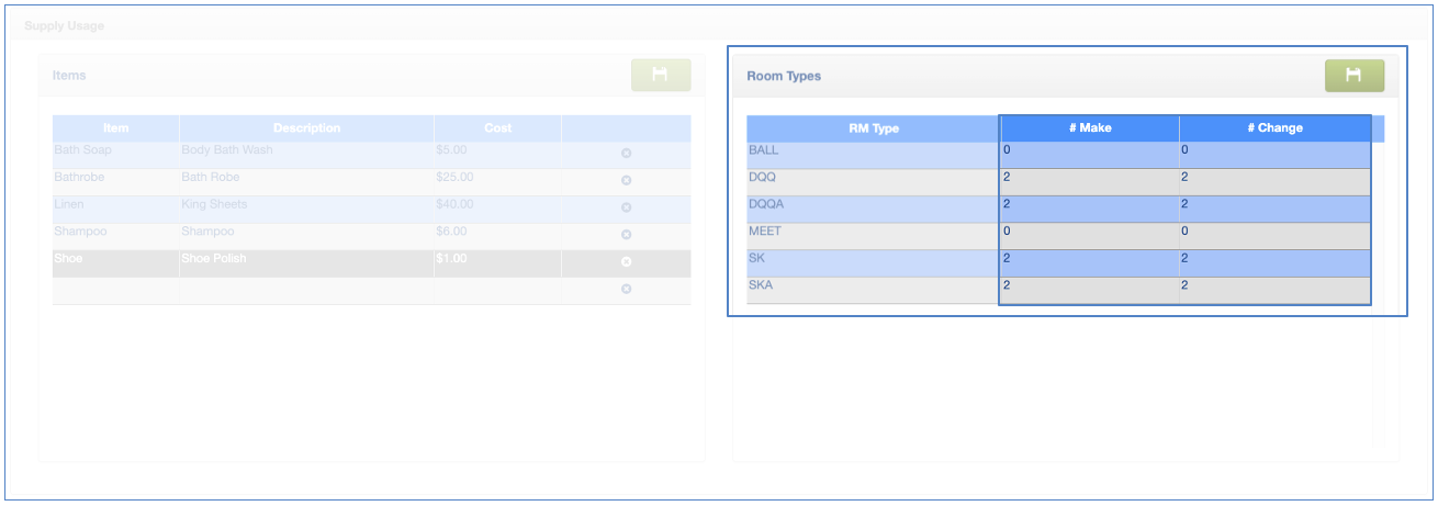 3. Enter the number of items needed for this room type when the room is clean as Make and as Change. Repeat for each room type.