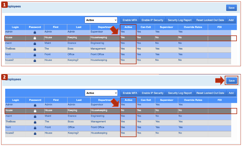 The Supervisor level can be given to anyone and is part of a user settings. This credential is not to be confused with the user department as a "Supervisor" or with the access privileges to "Front Office > Supervisor". Path: Management > User ...