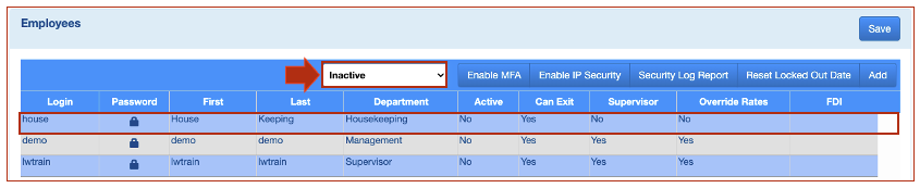 4. If you need to find the user again, change the status of the list from Active to Inactive (or All)