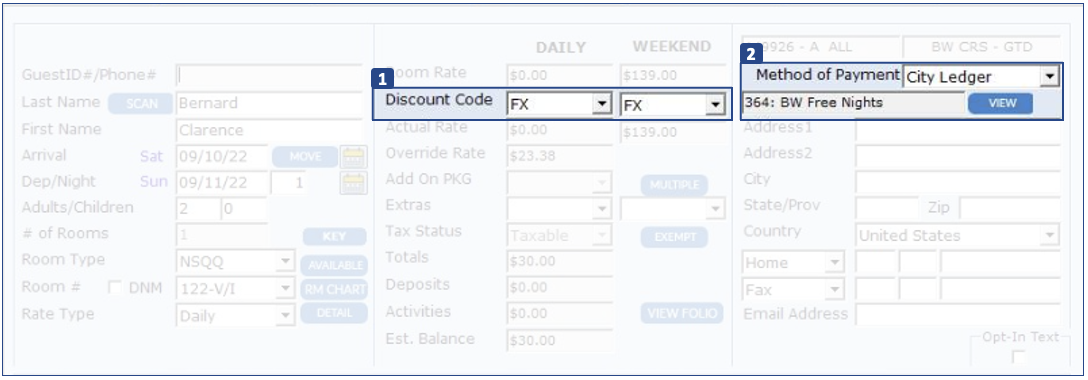 1. If not already mapped, select the FX discount code for Free Night Stay Redemption Stays.