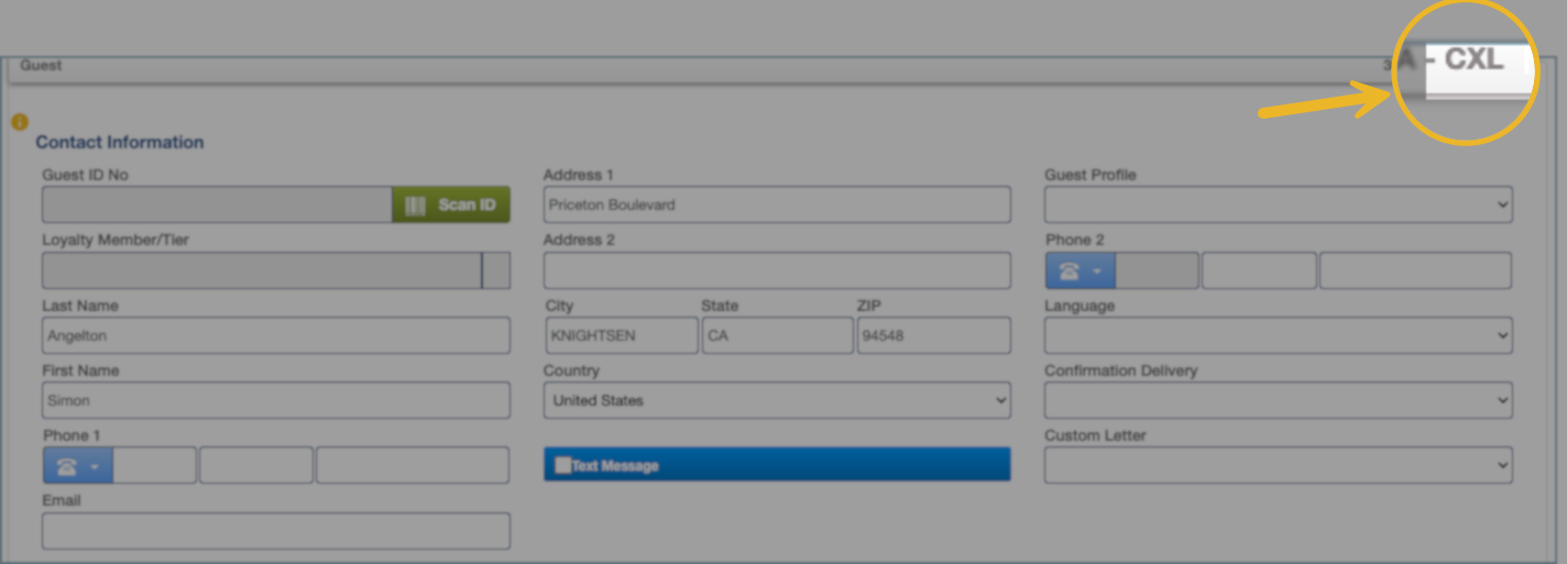 5. The system will now update the reservation status to Cancelled. The cancellation number will remain the same as the original confirmation number.