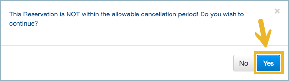 2. If the cancellation is outside the allowed policy period, the system will prompt you to confirm. Click Yes to continue and enter the cancellation reason when prompted.
