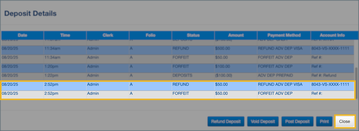 6. To verify how the deposit was handled, open the Deposit Details panel. Here you can confirm the amounts that were forfeited and/or refunded.