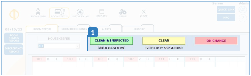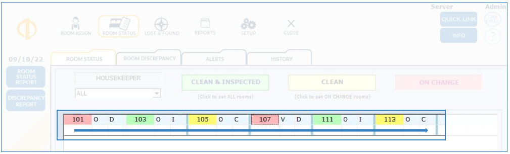Green: Room is Clean and Inspected. | Yellow: Room is Clean but needs to be Inspected. | Red: Room is still Dirty and needs to be Cleaned.