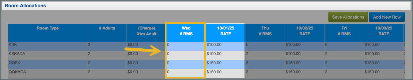 - If a room type is no longer needed, don’t delete the row — set its allocation to 0 and save.