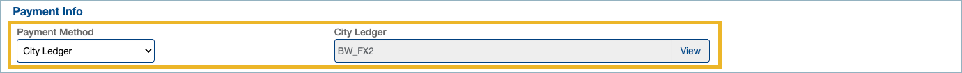 5. If a B Folio doesn’t already exist, create one. Set its payment method to City Ledger, and choose the designated FX2 City Ledger account (set up for FX2 reimbursements).