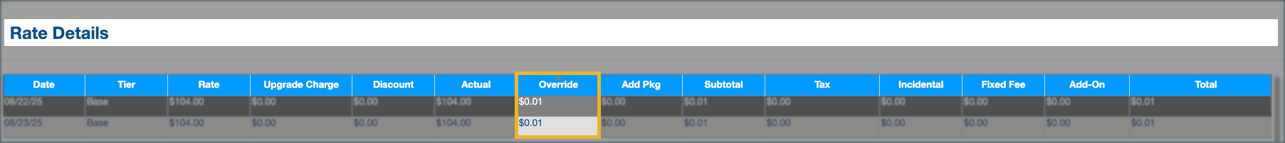 - If the guest still owes a balance, override the rate in Rate Details and post that amount as the room charge on Folio A.