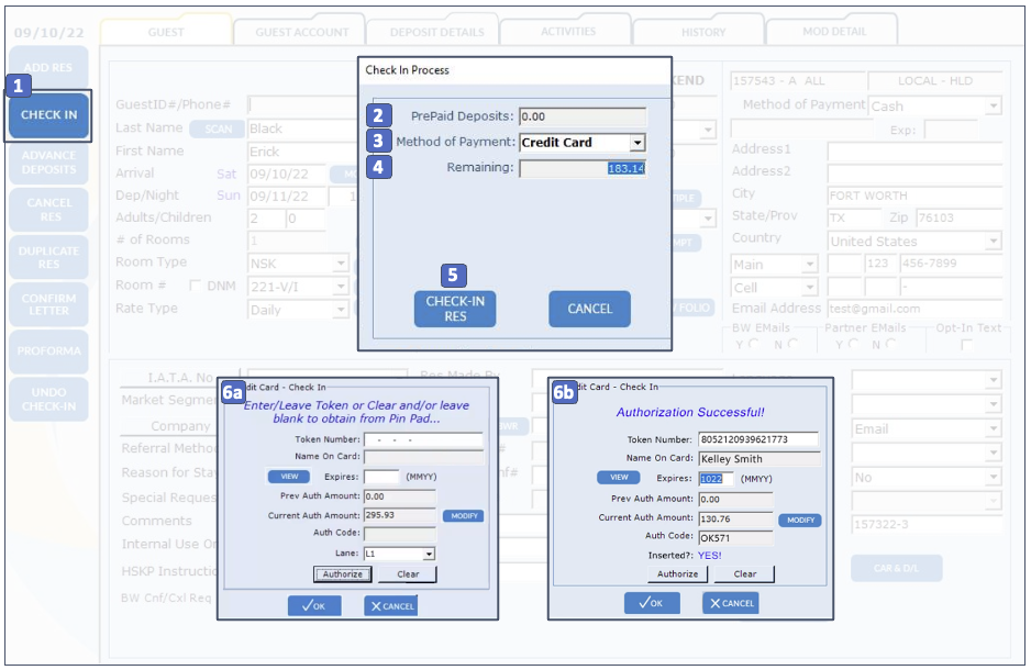 3. Choose Credit Card as the Method of Payment from the drop-down in the Check-In window.