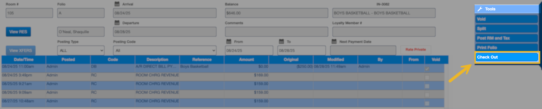 - If the system prevents checkout, recheck any sub-folios or open balances.