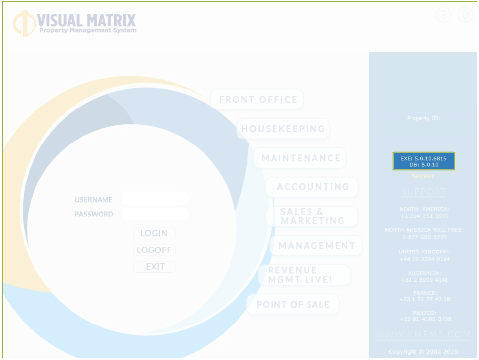 Similar to any software, Visual Matrix undergoes regular updates and upgrades. To determine the current version of your property, follow the steps below. Updates are automatically applied during the night audit, and property managers receive an information message before the update.