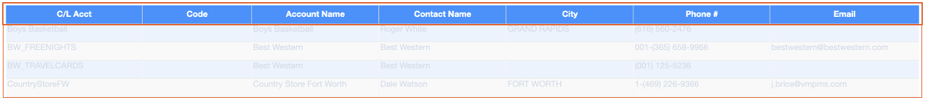 The City Ledger account Listing provides an overview of all City Ledger accounts within Visual Matrix, making it easy to access and manage corporate or group guest accounts efficiently.