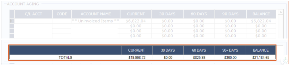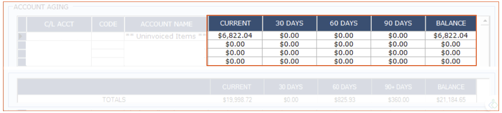 The second section will show the current 30-day period balance, the past 60/90-day period balance and the current total balance of the account.