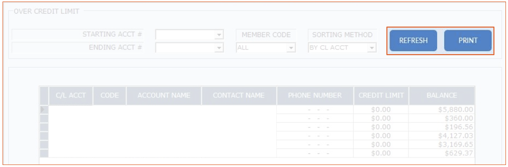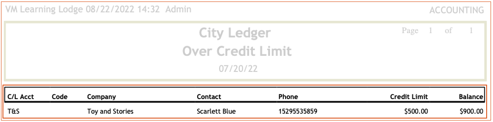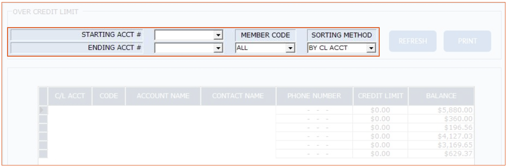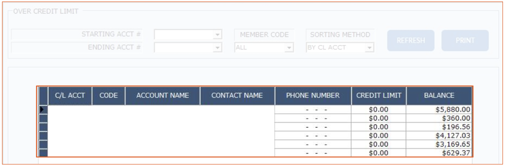 The Over Credit Limit report displays any CL Account that has a balance over the credit limit set up in their account.