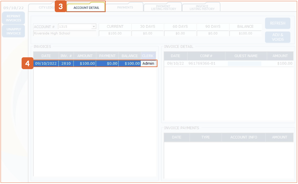 ? Watch Video Path: Accounting > City Ledger > Account Listing > Open a CL Account > go to Account Details 1. Select an Invoice in the account details. 2. Click "Unapply Invoice" to send the Direct Bill back to the "Print Invoices" screen where it ...