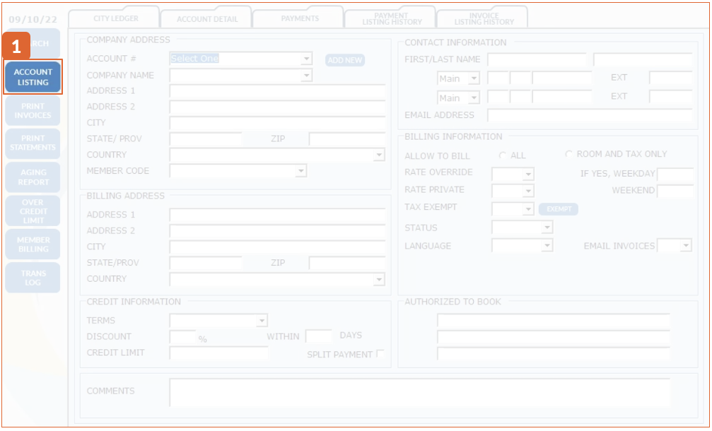 Path: Accounting > City Ledger > Stay on the City Ledger tab