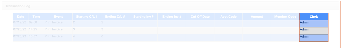 - Name of the clerk that issued the event.