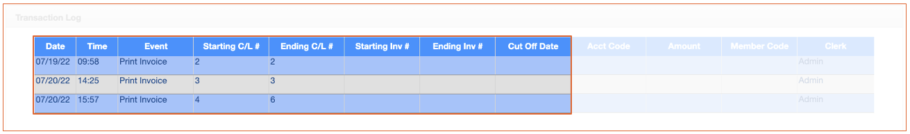 - Range of CL accounts will show invoices numbers that were printed/created or unapplied.