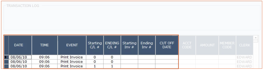 The Trans Log will show anytime an invoice was printed or unapplied, or a member is billed. This report cannot be printed.