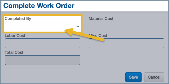5. Click Save to complete the work order.