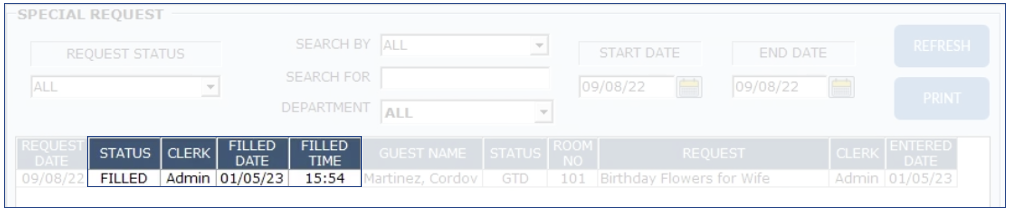 ? Watch Video Path: Front Office > Supervisor > Special Requests 1. Search for special requests using any optional available filters: - by the Status of the request: pending, or filled. - by name: first name, last name or event name (if the user is ...