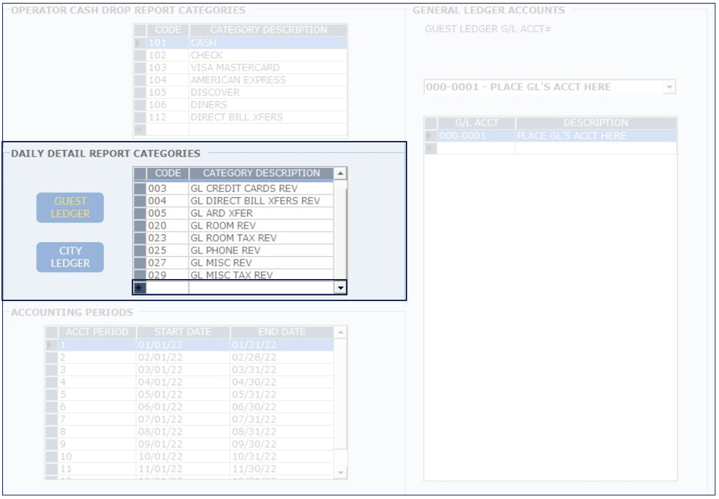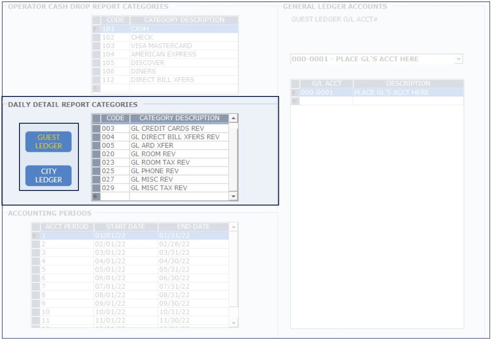The Daily Report includes guest ledger and city ledger figures. The categories for those figures are created in Management.