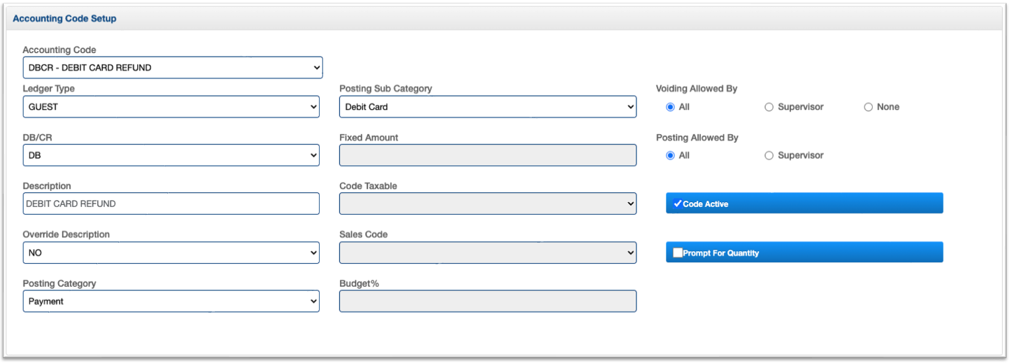 Create a "Debit" Payment/Refund Accounting Code (Cloud)
