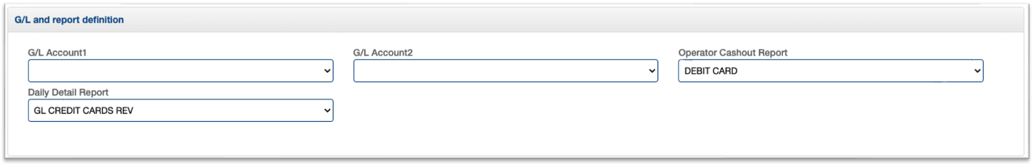 - G/L Account1 & 2 (Optional): Only if you did setup the