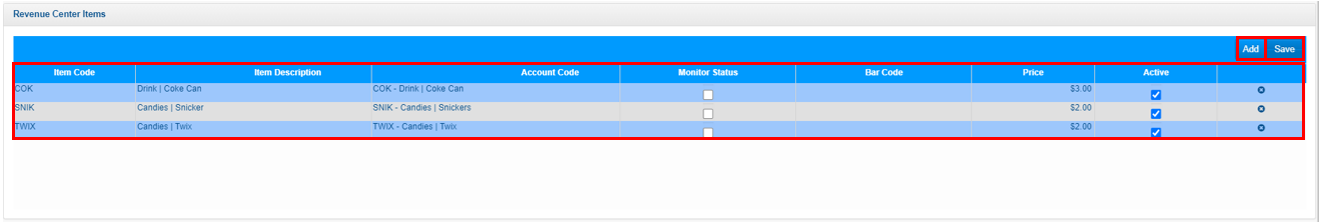 - Check the "Active" box to Activate the Item in the Revenue Center.