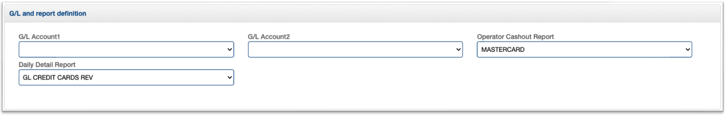 - G/L Account1 & 2 (Optional): Only if you did setup the