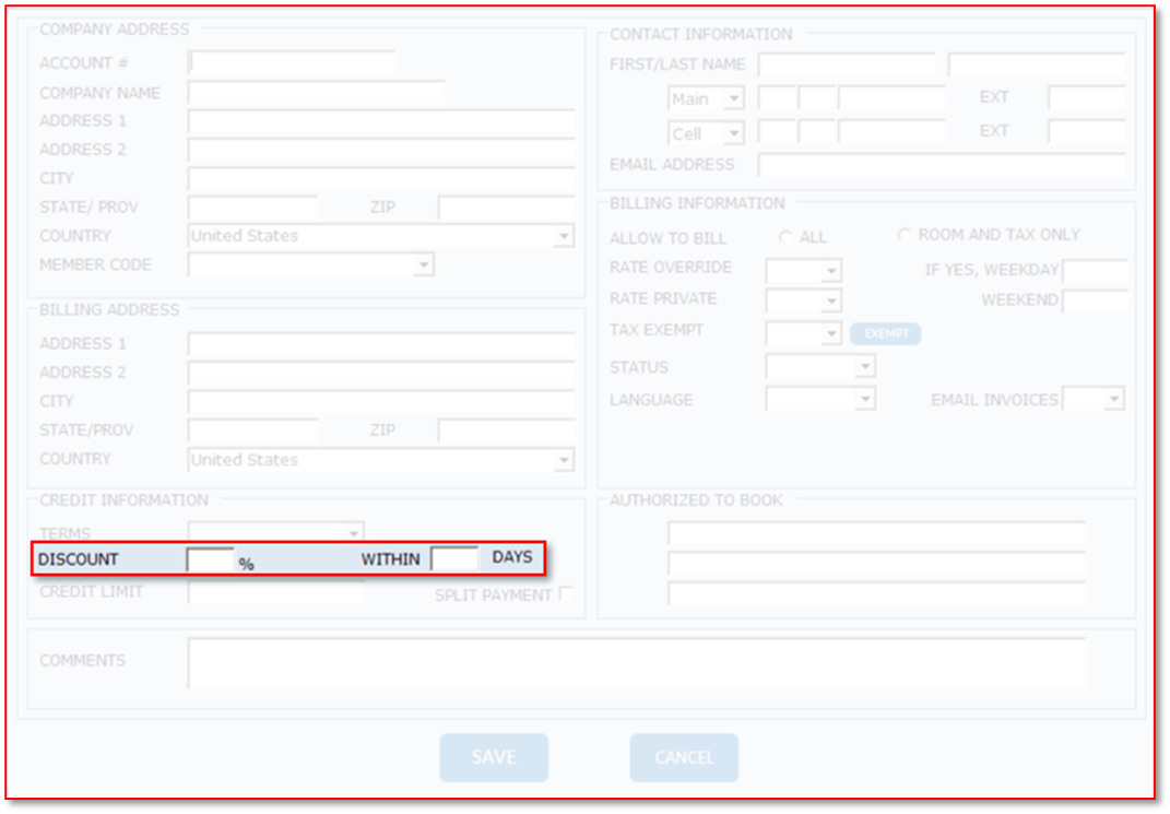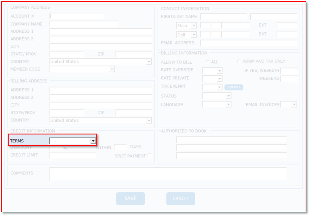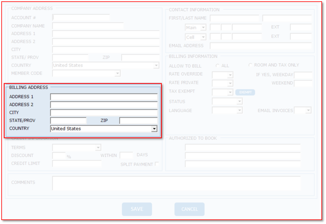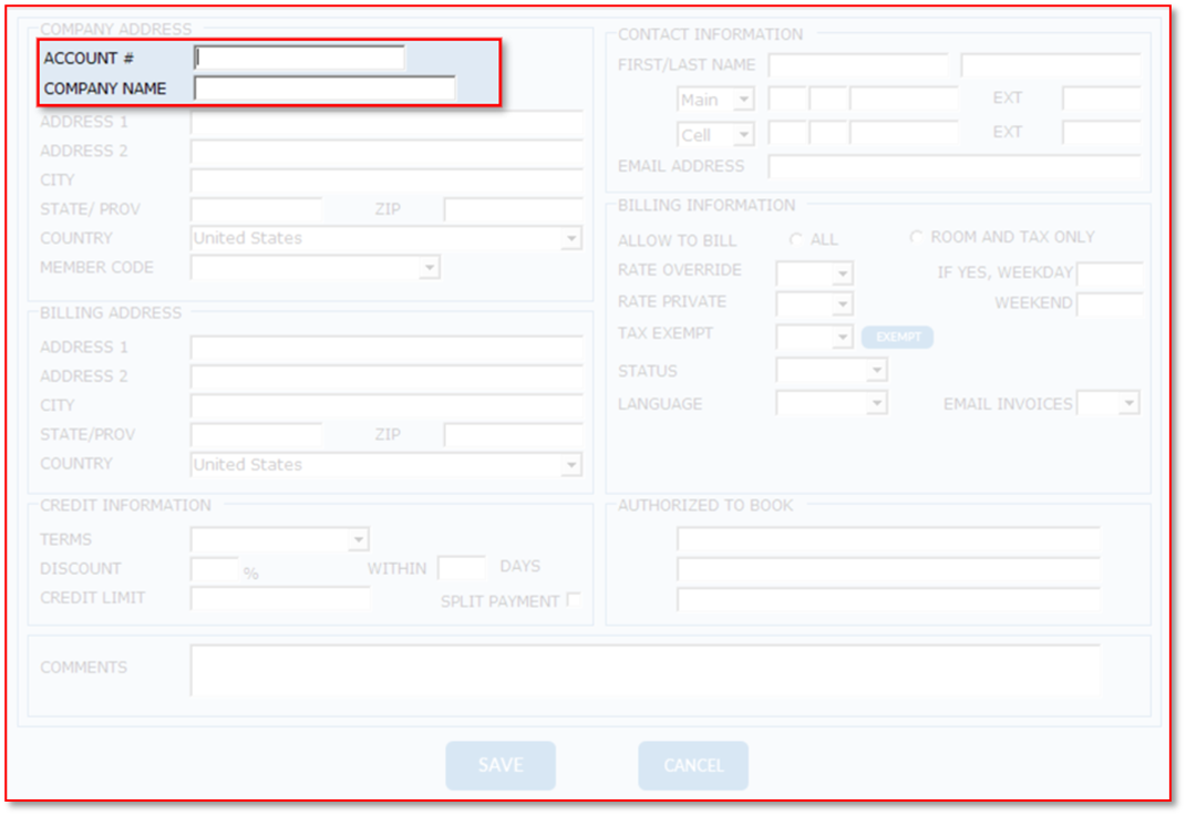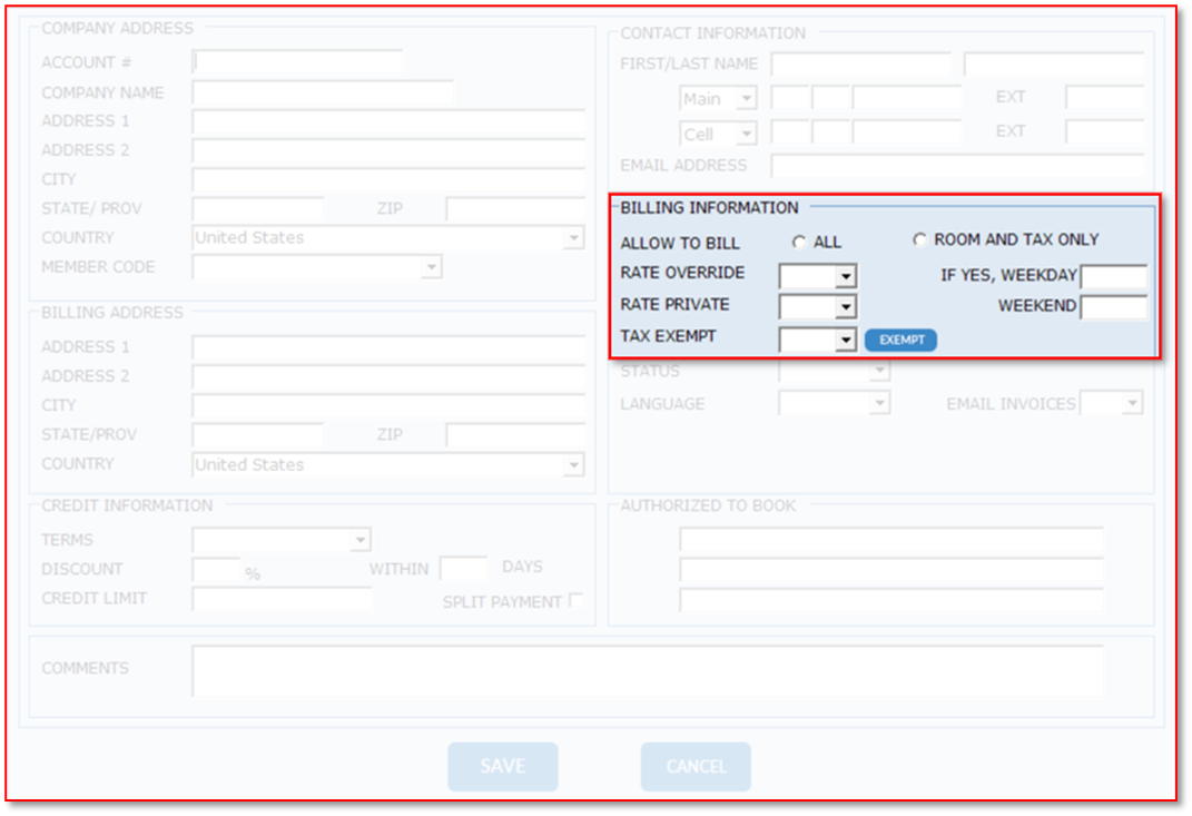 5. Choose if the account is allowed to bill ALL Charges or Room and Tax only. This setting will not prevent any wrong billing. It will display a popup message at the moment of the billing to remind that the account is only for room and tax billing.