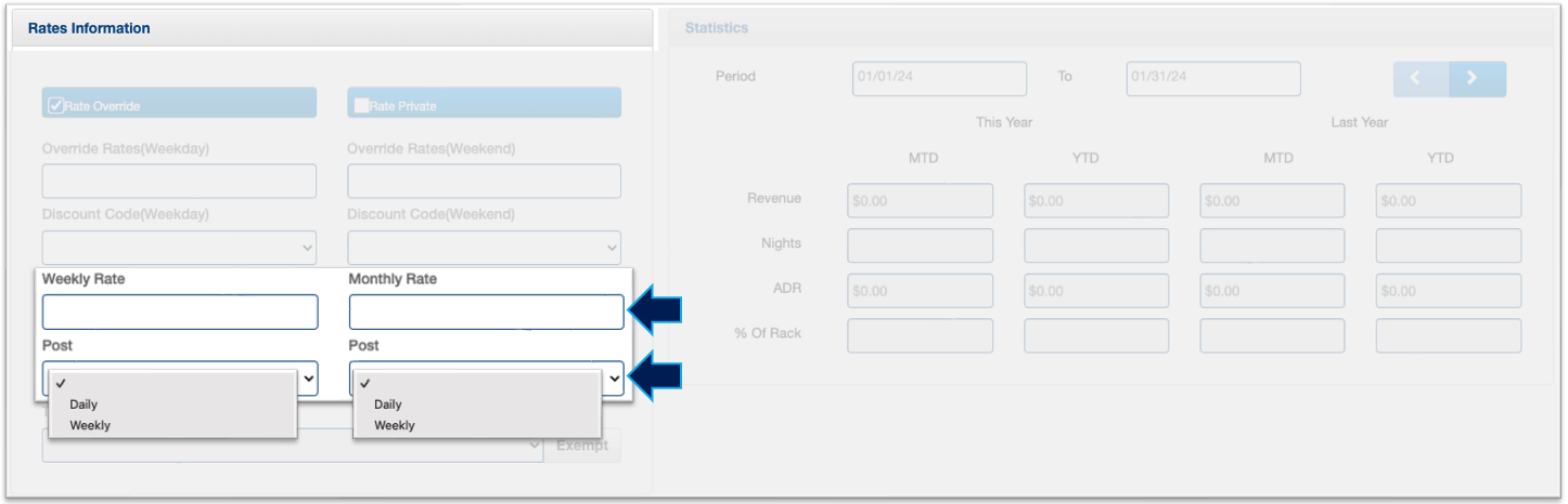 7d. Extra possibility, you have the option to setup a customized weekly and/or monthly rate, and decide how it will be billed, weekly/monthly or daily. For more information about weekly and monthly rates, click
