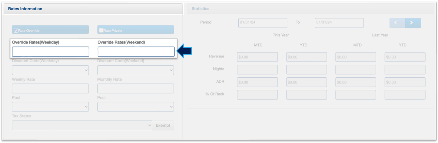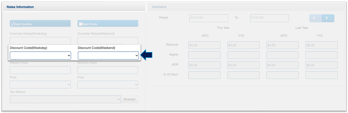 discount code, and you also have the flexibility to define separate rates for weekdays and weekends.