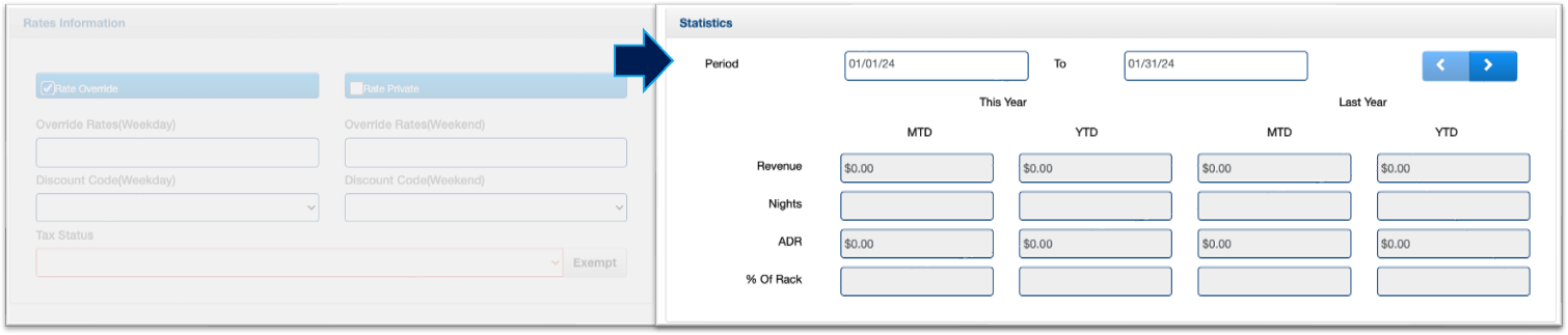 12. In the final section of the Company profile, you'll find the "Statistics" section. This area assists in monitoring the company's activity with the hotel and tracking the revenue generated by its employees.