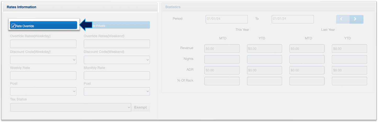 7a. Click the "Rate Override" box.