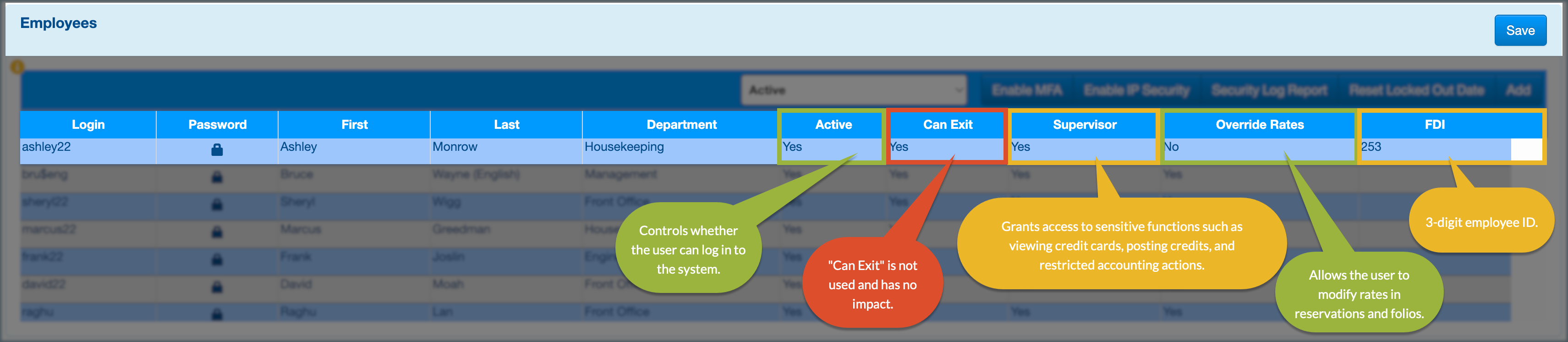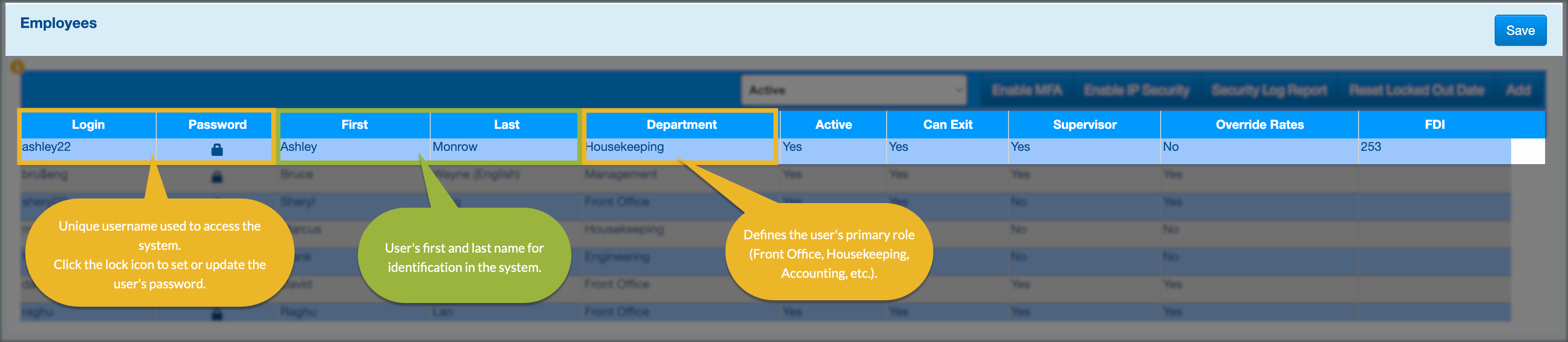 Housekeeping and Maintenance staff should also have user accounts, even if they do not log into the system. Without a user account, rooms cannot be assigned and work orders cannot be created.