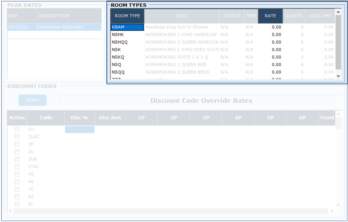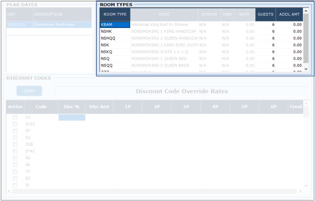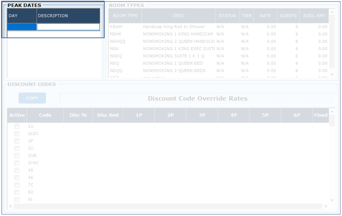 5. If applicable, set up a specific discount code for this room type and this peak date. For example, a discount code of 10% can be setup at a different percentage for this specific date. Instead of creating another discount code to apply, the discount code can be modified.