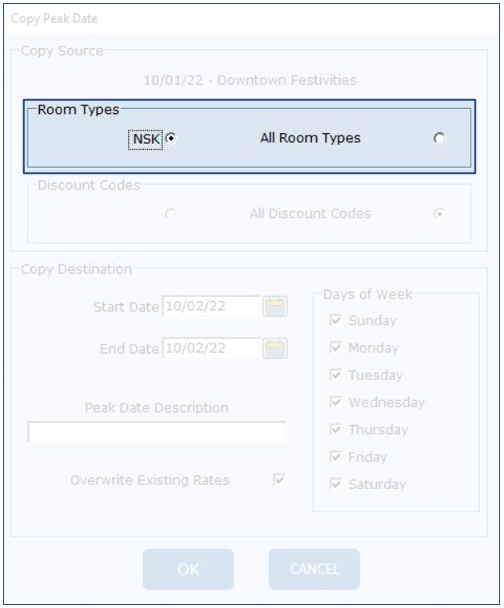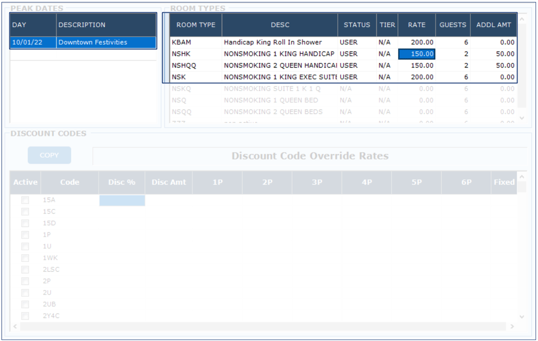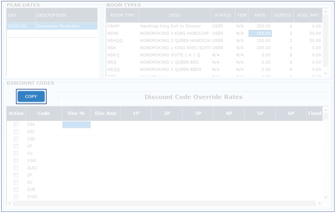 1. Select the peak date to copy. Select a room type with a "User" Status.